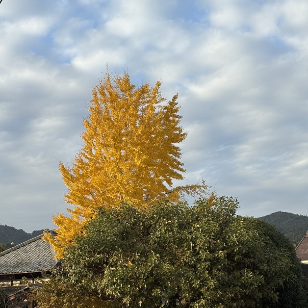 2025年11月25日 秋も終わりを迎え、イチョウが最高に色濃く輝いています。鴨川にはあちこちで都会には少ない大きく立派な株があり、感動して眺めています。 |