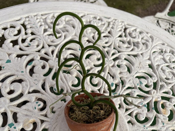 メキシコ、パナマに自生する愛らしい花、つぼみです。花だけでなく株も独特な形で楽しめます。Braided Orchid (組紐ラン)のニックネームがあります。ベルトにもこのようなものがありますね。