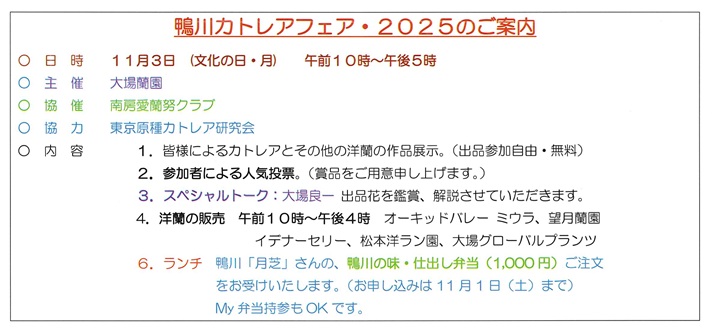 ☆「2025・ 鴨川カトレアフェアリスト」 ができました。
