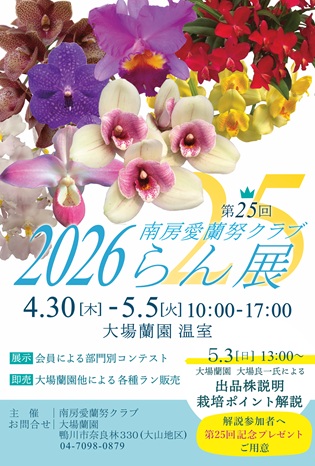 ◎2026年からの洋蘭展出店は地元南房愛蘭努クラブ、近隣のみの出店にさせていただくことにいたしました。どうぞご理解、ご了承をお願い申し上げます。