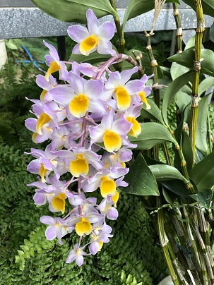 春咲きカトレア、デンドロ、春咲き原種のシーズンです。販売・展示室でも 様々な花が咲き大変にぎやかです。