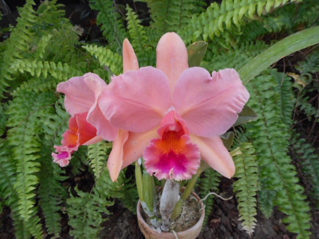 清澄自生株の種をバイオで繁殖したもので、昨年末から寄せ植えで開花しました。画像の1輪の花が最初に咲いた花で、これまで見たことのない色の濃いピンク花でびっくりしています。 この中の1個体がJOGA審査でブロンズメダル受賞しました。また、最近お買い上げいただきましたお客様からもピンク花開花のご連絡があり、いよいよこれからが期待できます。